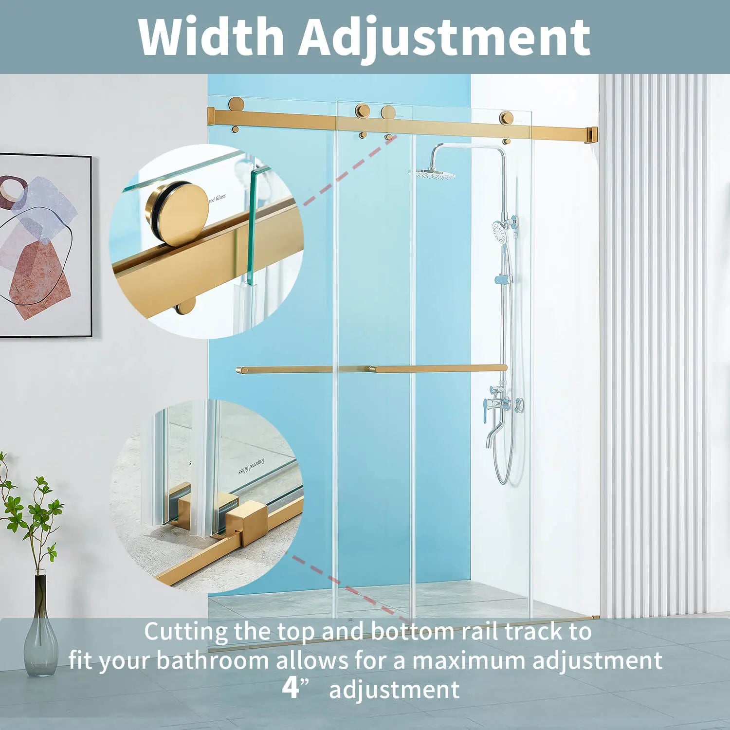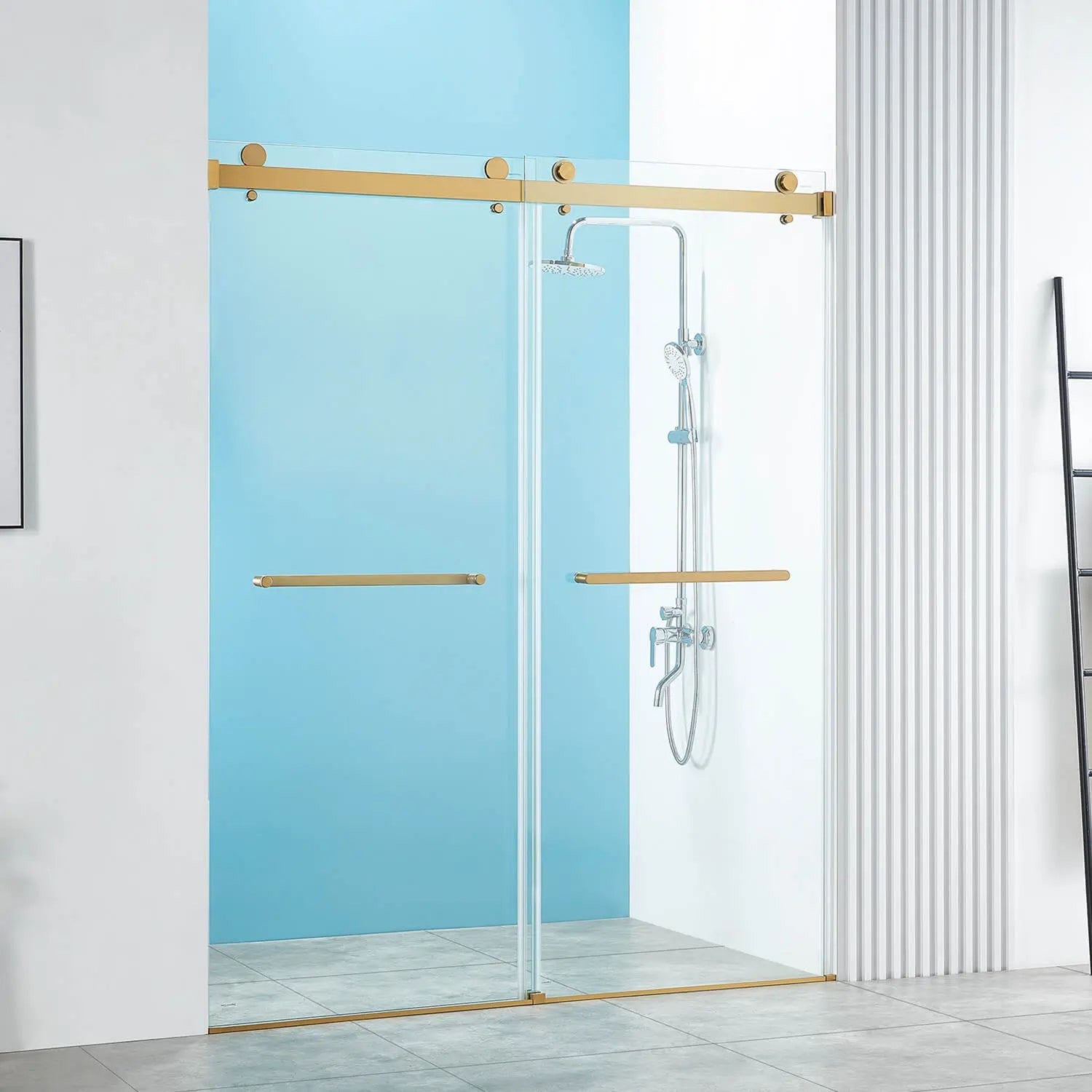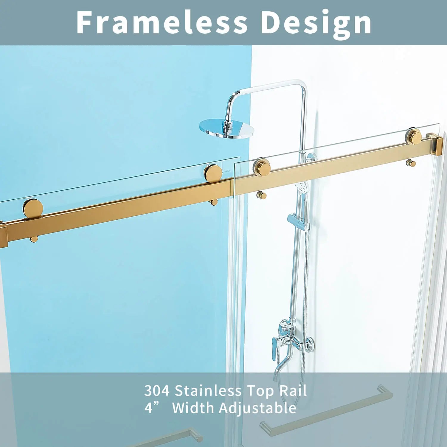 A01-56-60"x76" Waterproof Frameless Double Sliding Shower Door, 5/16" Tempered Glass, Gold