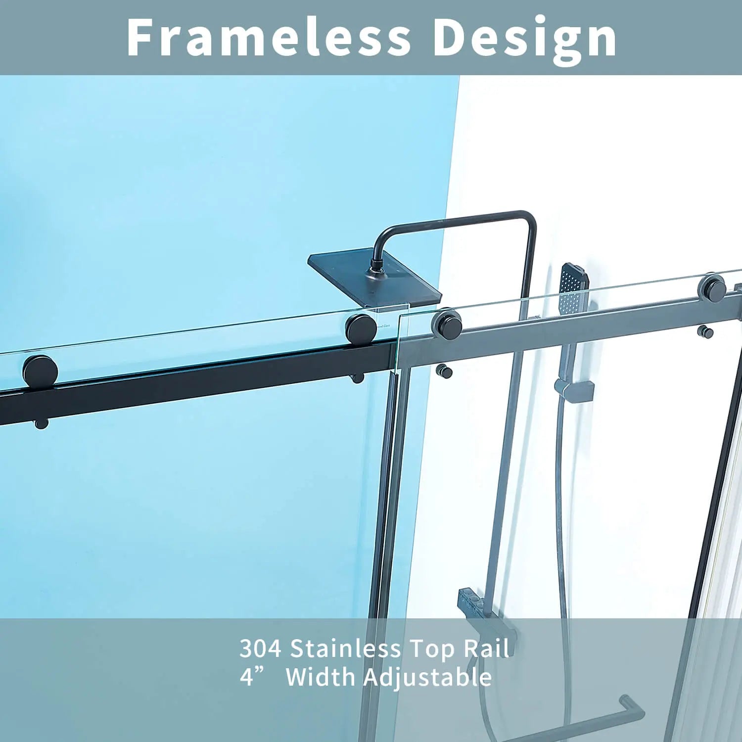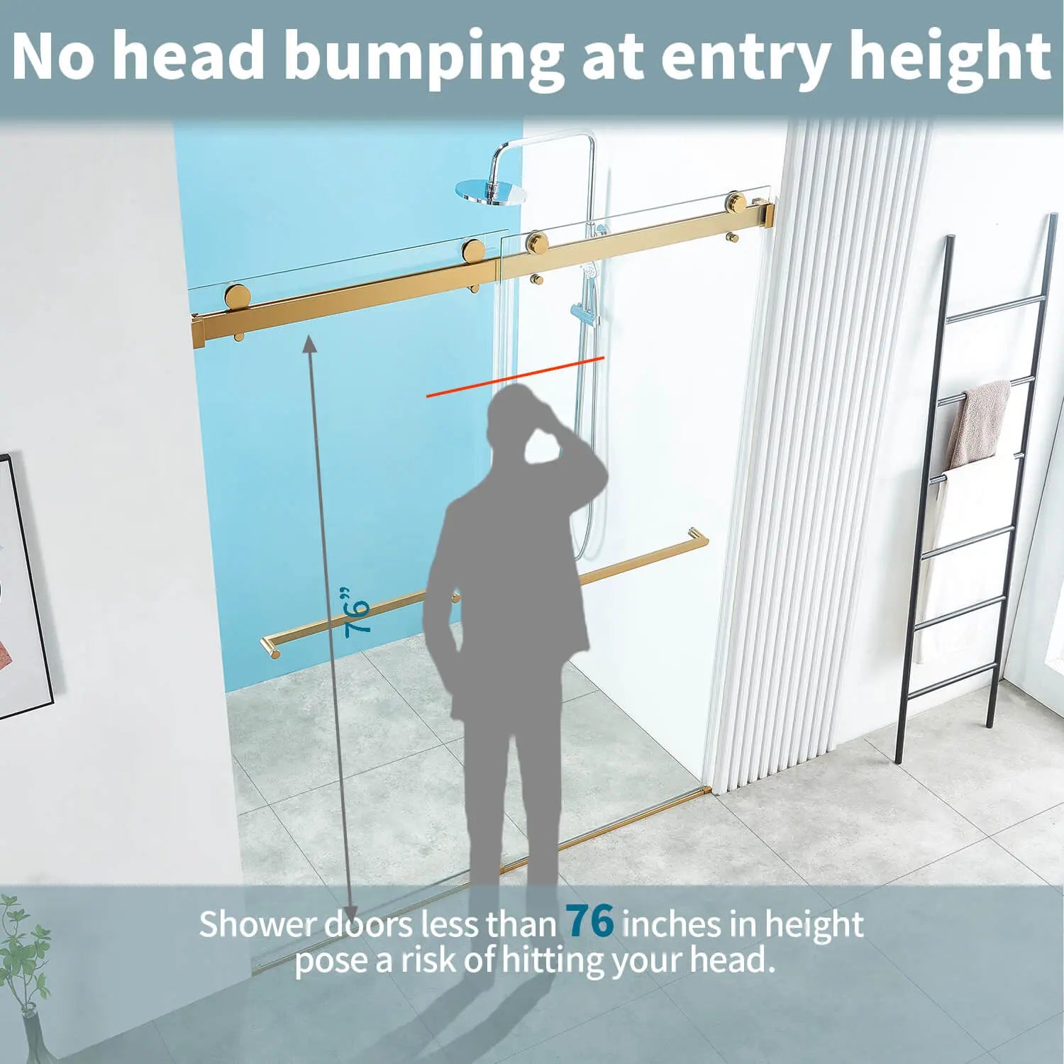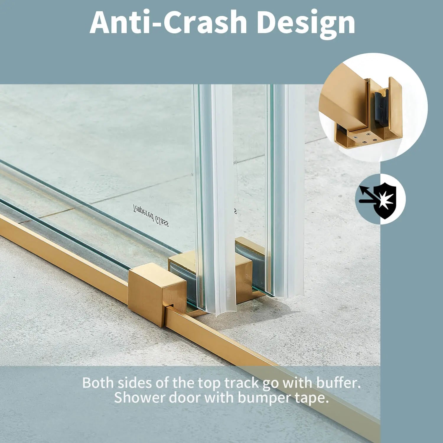A01-56-60"x76" Waterproof Frameless Double Sliding Shower Door, 5/16" Tempered Glass, Gold