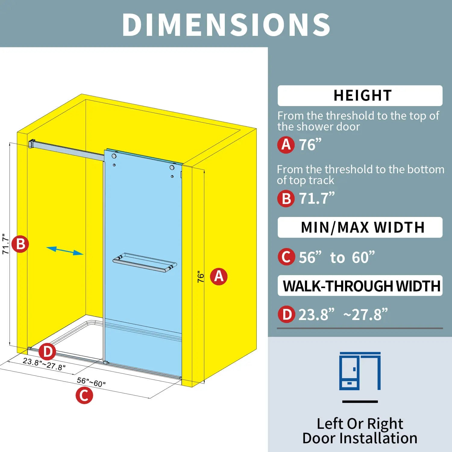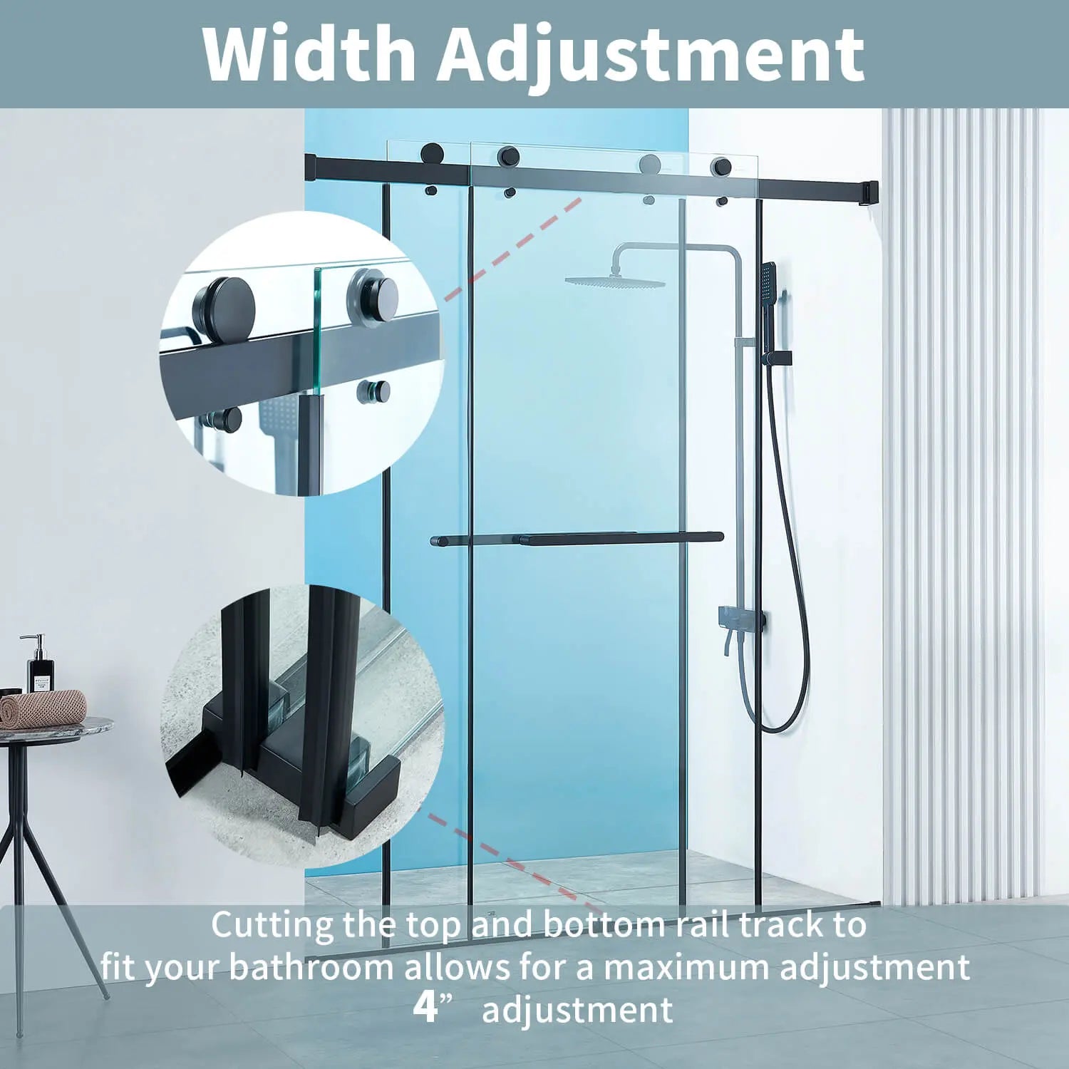 Installing the A01 Double Sliding Shower Door is straightforward, thanks to its adjustable width. It fits openings of 56-60 inches wide and stands 76 inches tall, making it versatile for most bathrooms. This extra stable design ensures that the door operates smoothly without wobbling or falling off. Therefore, you can enjoy a reliable shower experience without worries about installation or stability.