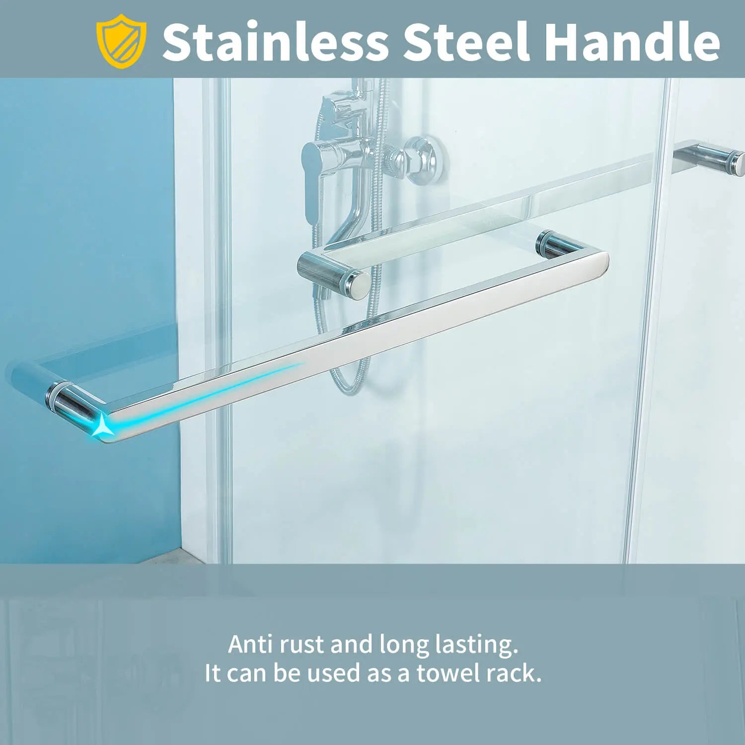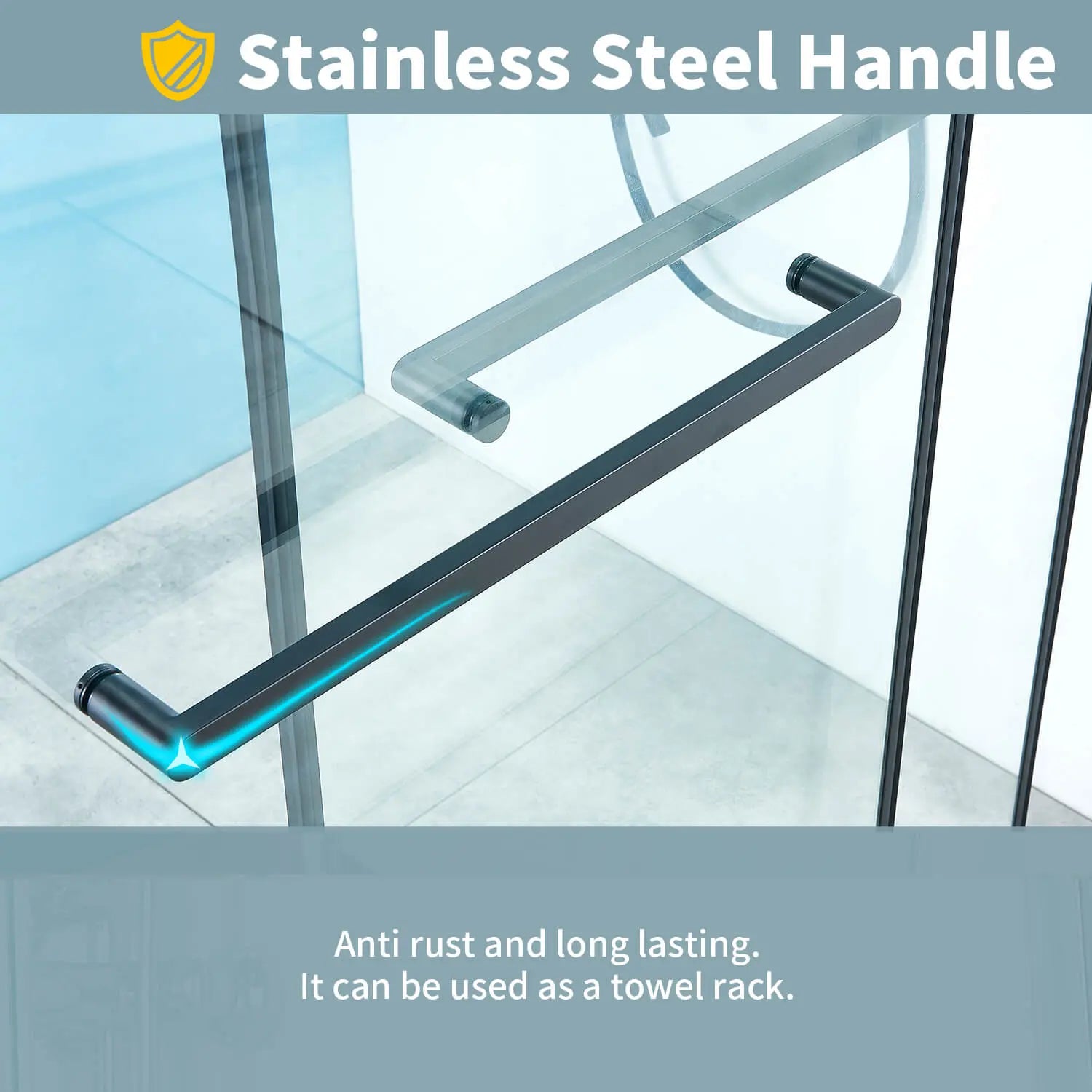 Safety is a top priority for any bathroom design, and the A01 Double Sliding Shower Door excels in this area. Both sides of the glass are coated with a Nano easy-cleaning coating, which not only keeps your glass looking pristine but also helps prevent slips. This coating makes it easier to maintain the door's appearance, ensuring that it remains both stylish and safe, so you can shower with peace of mind.