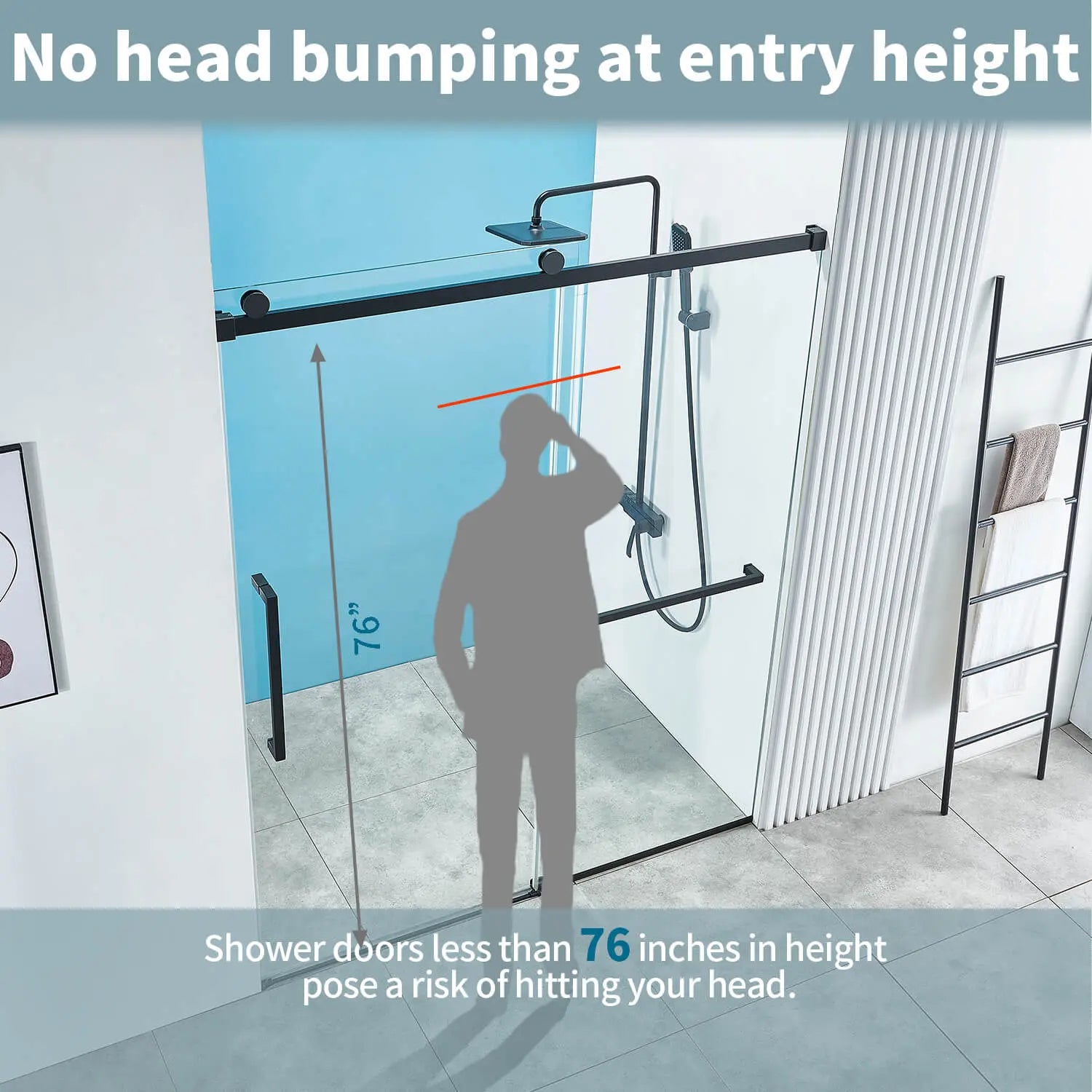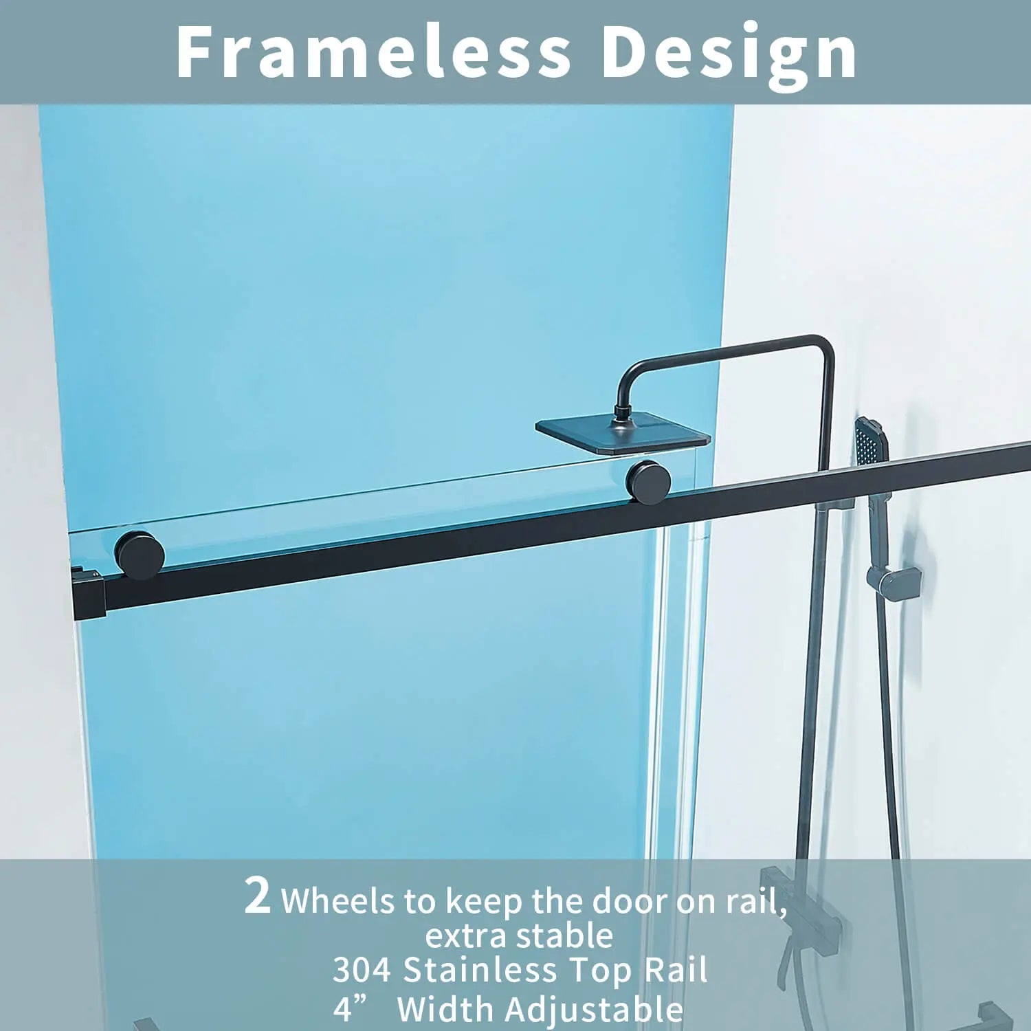 X01 56-60"x76" Frameless Sliding Shower Door, 5/16" Tempered Glass, Black