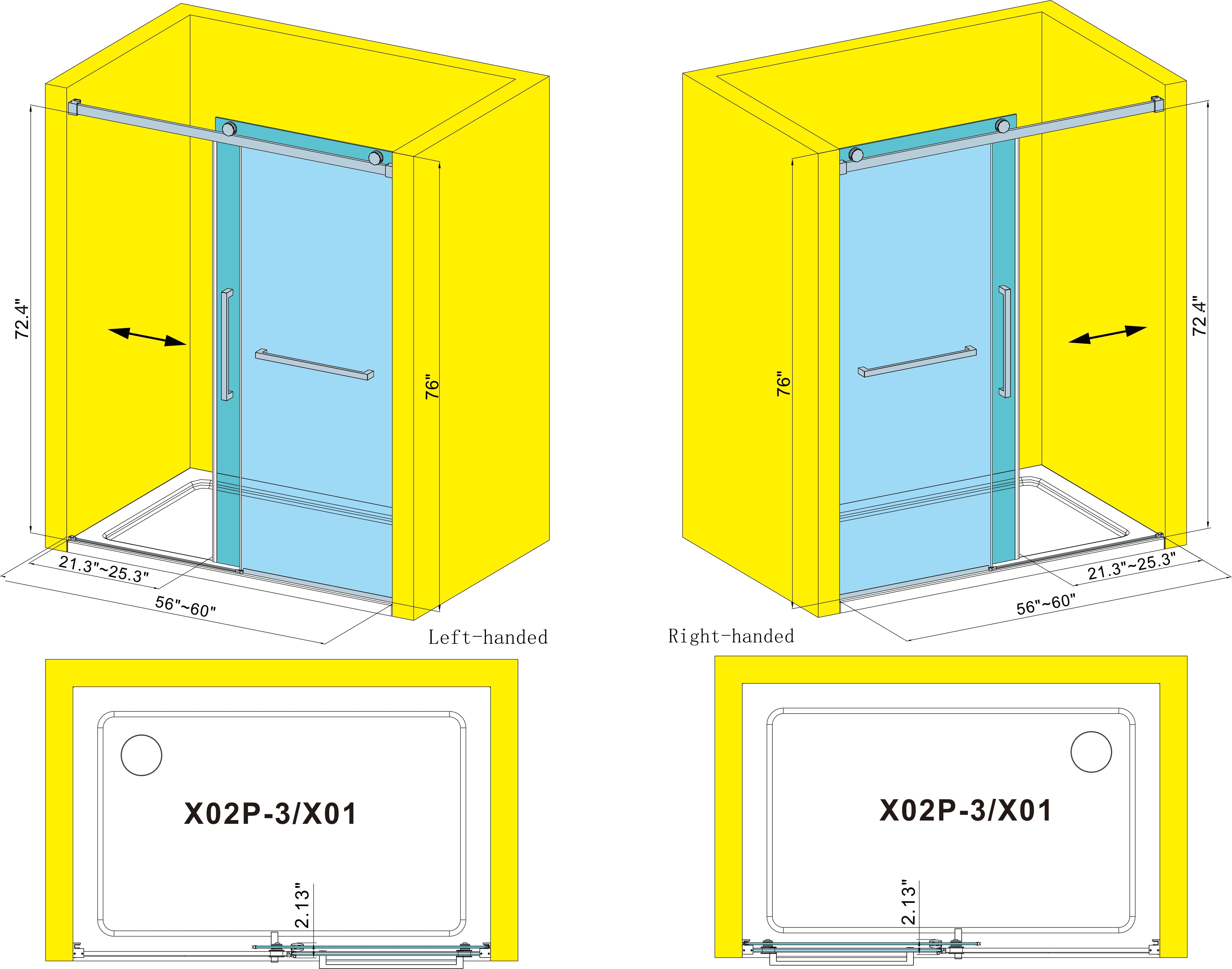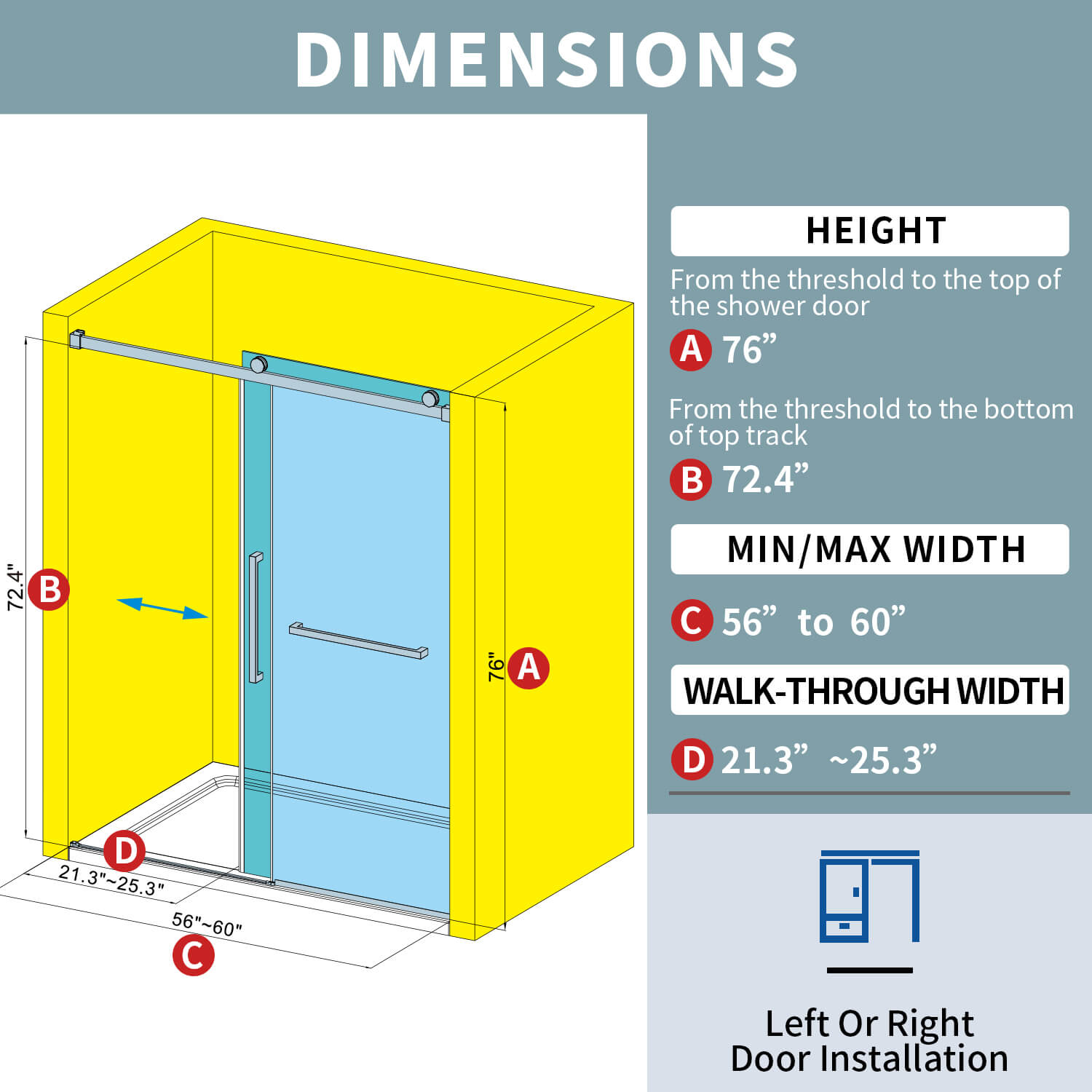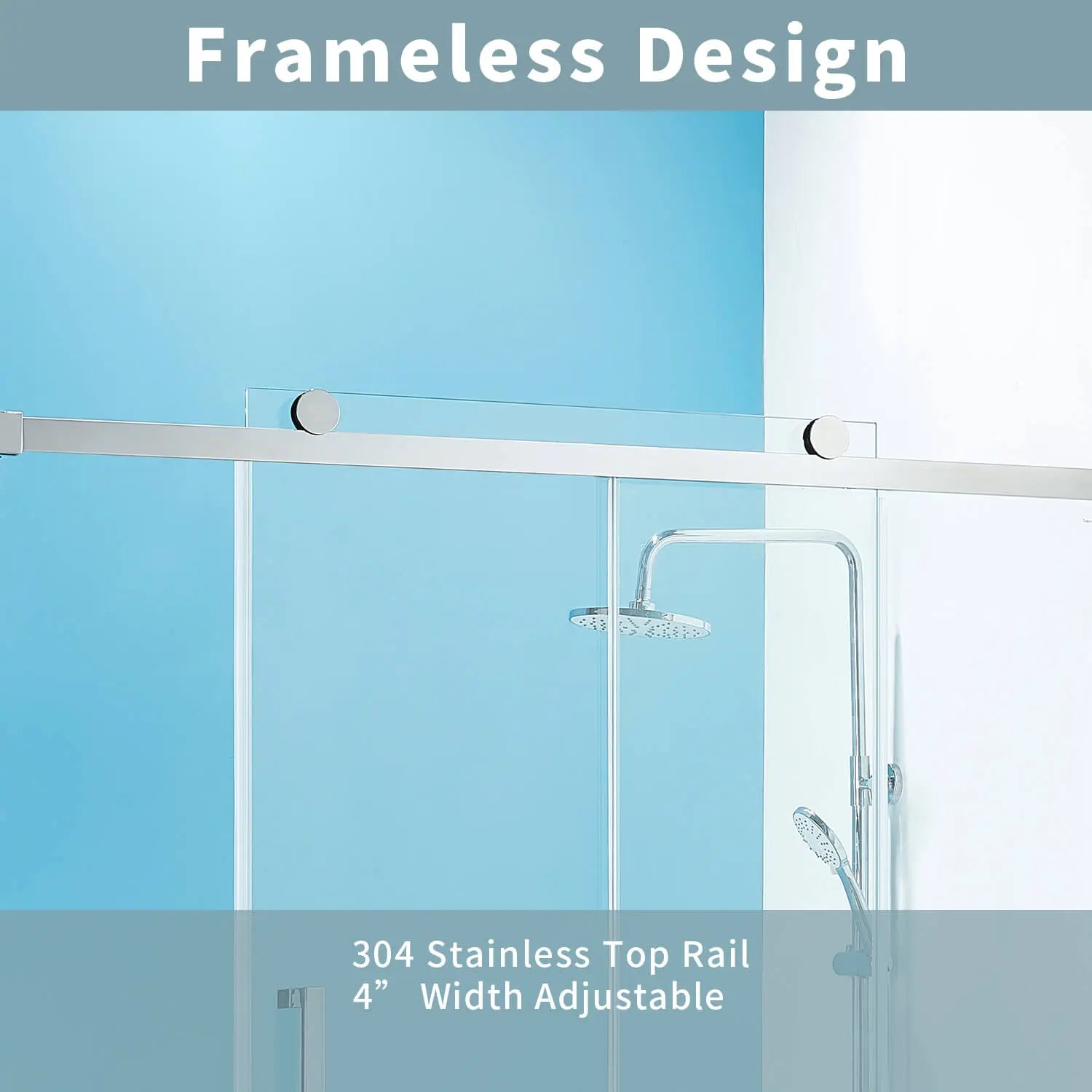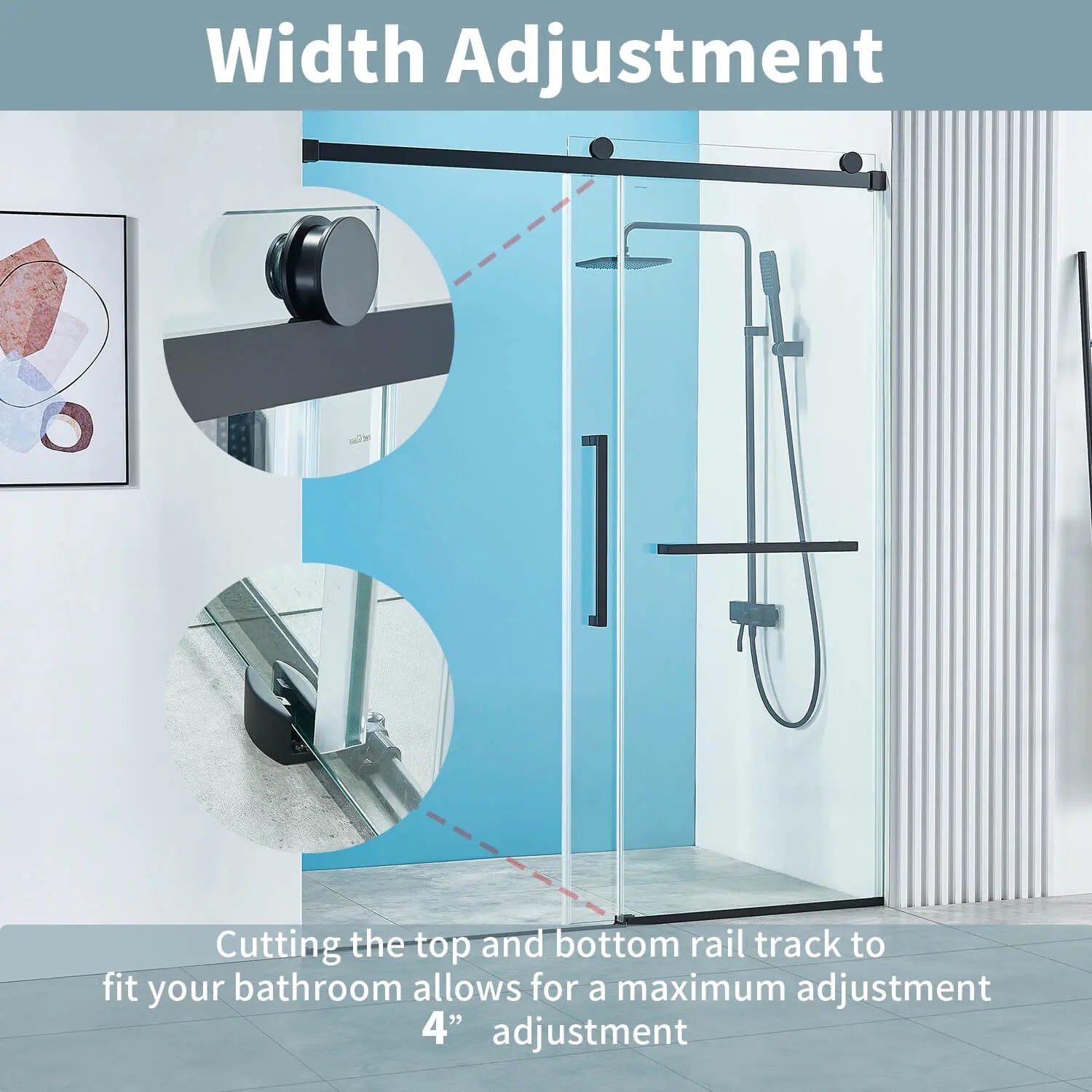 The X01 56-60"x76" Frameless Sliding Shower Door enhances your bathroom's aesthetic, combining elegance with practicality. Its sleek, frameless design offers a contemporary look, while the 5/16" tempered glass ensures safety and durability. This sliding shower door makes a bold statement without overwhelming your space, and the black hardware adds a modern touch, so it complements various bathroom styles effortlessly.