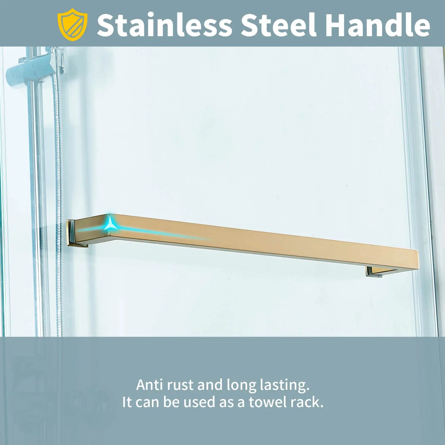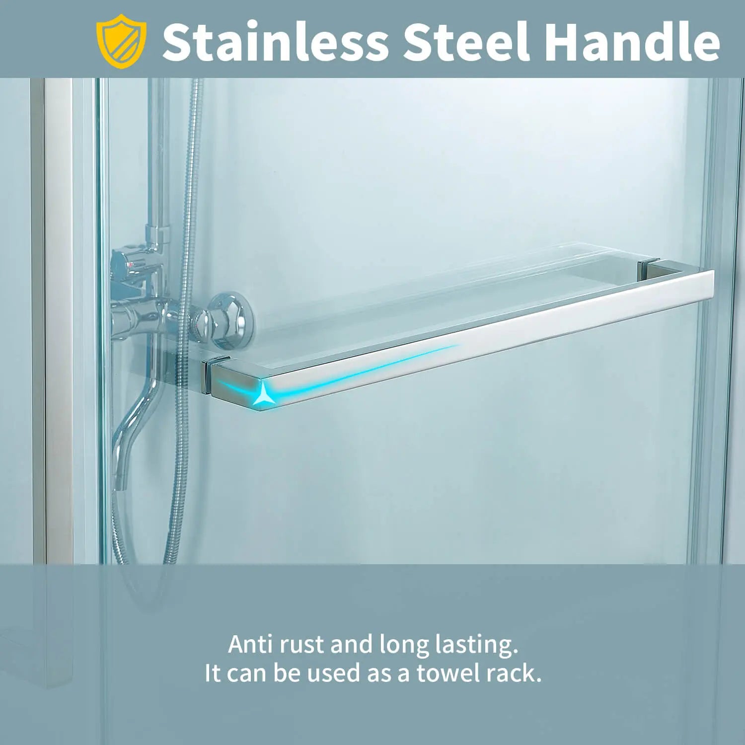This unique shower door is equipped with features that prioritize comfort and convenience. With a silent pulley system, this door glides smoothly, preventing any noisy interruptions during your shower. Moreover, the towel bar integrated into the design provides added utility, making it a perfect choice for anyone looking to optimize their bathroom space.