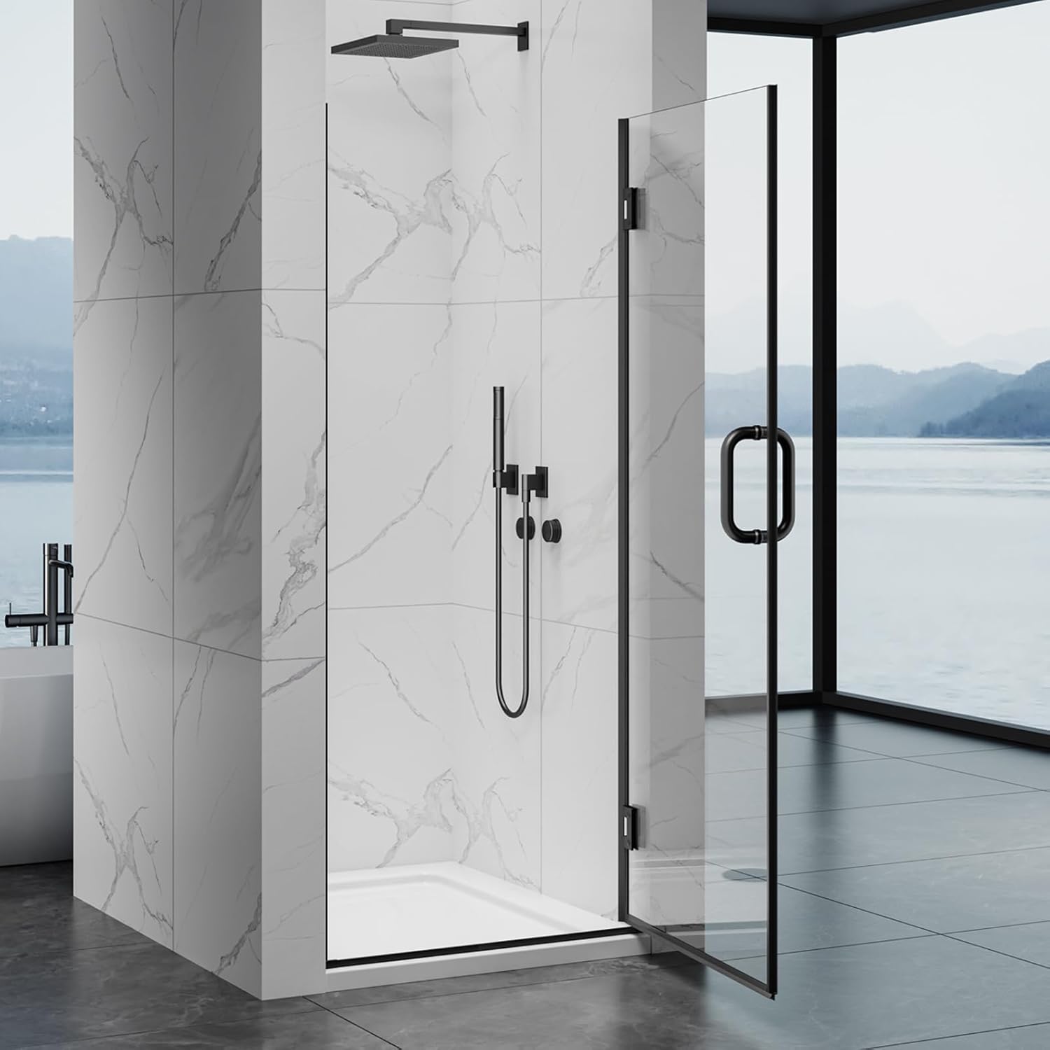 Frameless Hinged Shower Door 28"Wx76"H 8mm SGCC-Cert Tempered Glass Matte Black